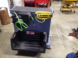 This was a fun project - a work cart for Hazem. It was a secret, and I even brought it to his shop to paint it, telling him it was for me. He liked it and mentioned more than one time how handy something like that would be :) The front has ten organizers and six drawers. Patrick and Tony helped me design and build it.
